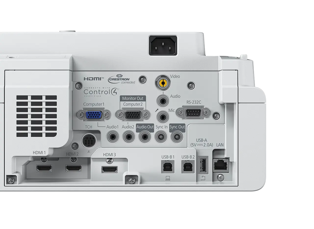 USB 2.0-A (2x), USB 2.0-B, RS-232C, Ethernet interface, Wireless LAN IEEE 802.11a/b/g/n/ac, HDMI in (3x), Composite in, Mic in, Jack out |