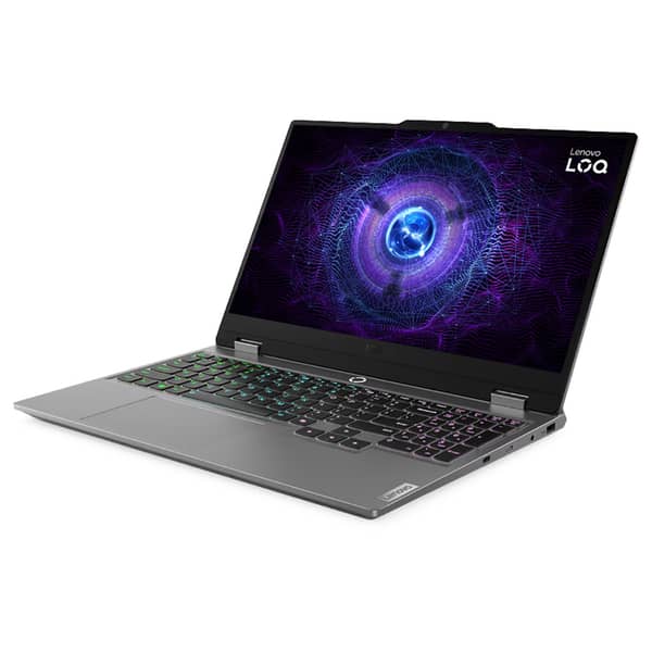Lenovo LOQ 15IRX9 in Luna Grey oers a clean, minimalist 15” design that’s 4% slimmer than the previous model for added portability. The intuitive power button light indicates fan modes and a 1080P camera with an e-privacy shutter ensures privacy. With strategically placed ports and MIL-STD 810H durability, it’s perfect for gaming, school, or streaming.